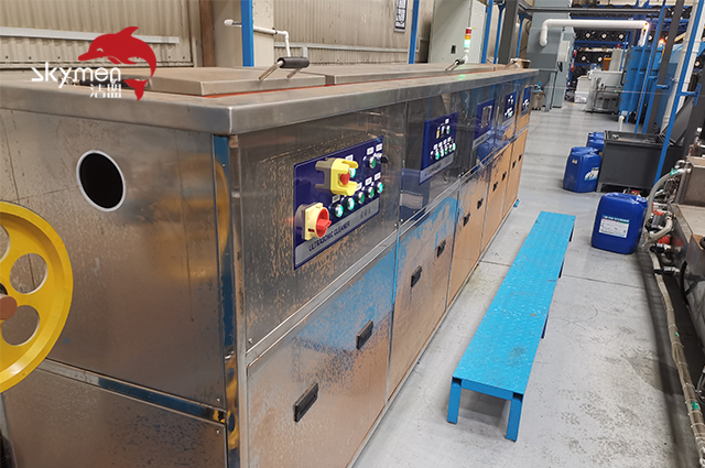 3.內(nèi)部安裝多組往復(fù)清洗導(dǎo)輪,使槽線在清洗槽內(nèi)的清洗長度不小于20m,確保清洗充分。